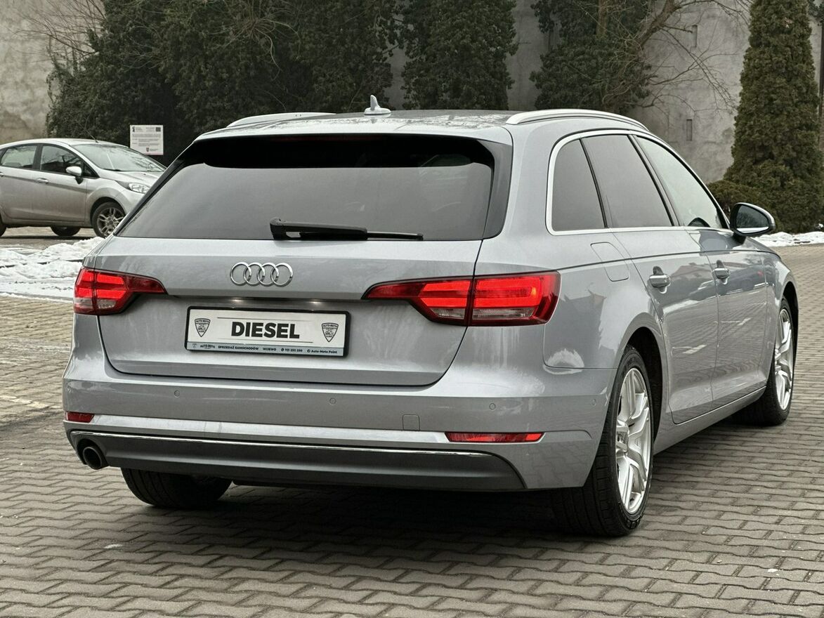 Bezwypadkowe Audi A4 B9 Avant.Wewnętrzny pakiet S-line. Samochód zarejestrowany i ubezpieczony w Polsce. Piękny kolor nadwozia "Florettsilber metallic" o kodzie lakieru "LZ7G". Dynamiczny i oszczędny silnik 2.0 TDI CR (Common Rail, poprawiona jednostka napędowa kodzie silnika DEUA) diesel o mocy 150KM. Automatyczna 7 biegowa skrzynia S-tronic pracuje prawidłowo i płynnie zmienia biegi. Oryginalny i udokumentowany przebieg. Dwóch właścicieli od nowości, sprowadzony do kraju w kwietniu 2024 roku, pierwszy właścicielem w kraju. Czyste i zadbane auto, dwa kluczyki, książka serwisowa, kompletna dokumentacja. Norma spalin EURO 6. Serwisowany na bieżąco. Olej w skrzyni biegów wymieniony w kwietniu 2024 roku przy przebiegu 177 tys. km.Kompletny rozrząd wymieniony przy przebiegu 180 tys. km. Auto miało w swojej historii jeden element powtórnie lakierowany.