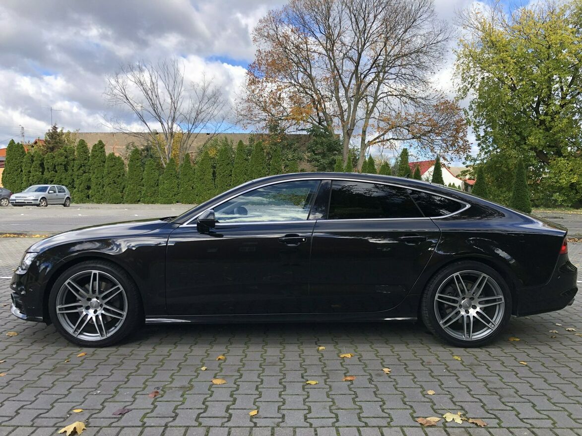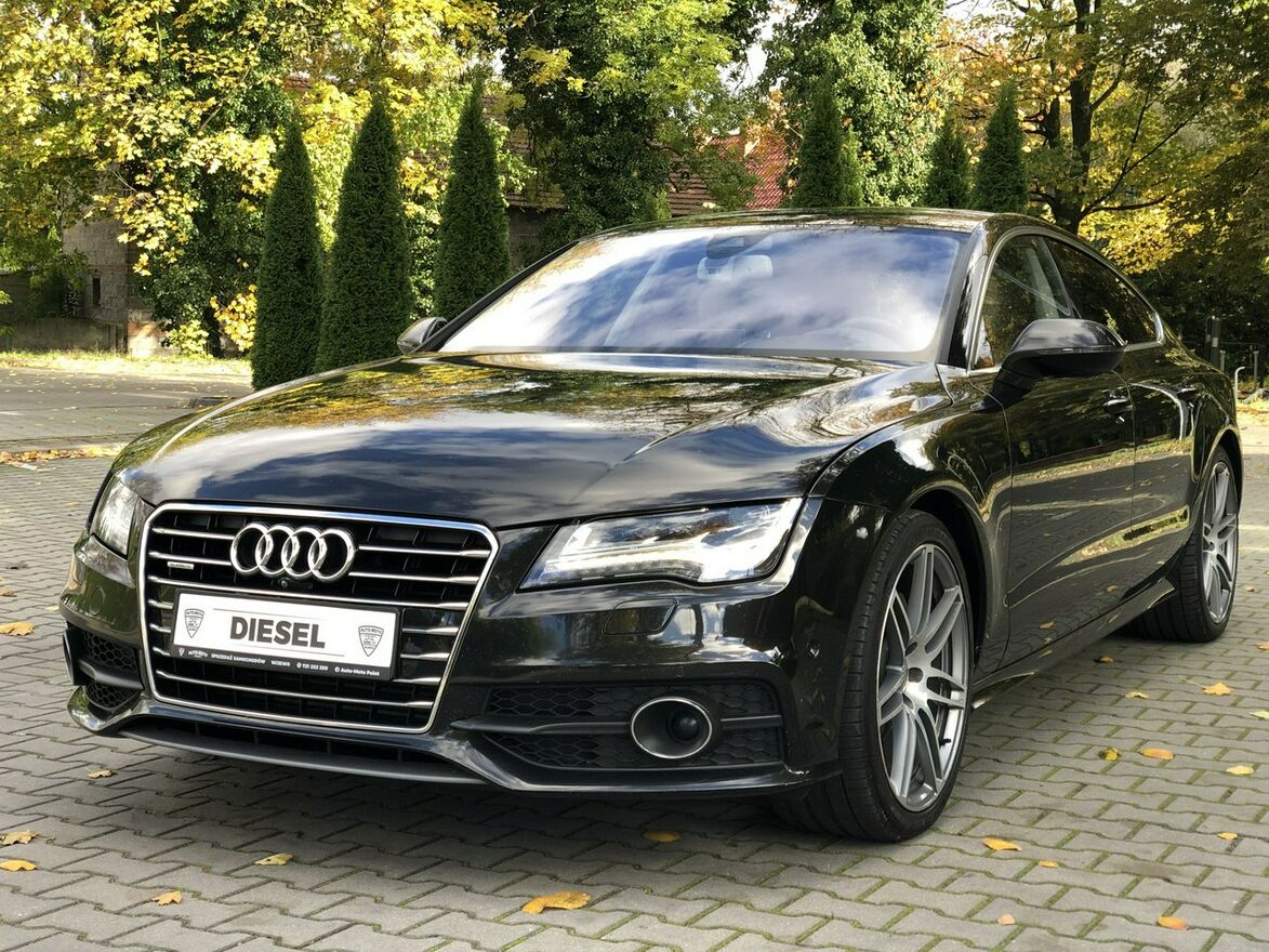 Bogato wyposażone Audi A7 C7 Sportback z napędem Quattro 4x4. Wyjątkowy brązowo-czarny kolor nadwozia "Havannaschwarz" o kodzie lakieru (LY8X). Beżowo-szare wykończenie wnętrza. Dynamiczny silnik 3.0 TDI V6 diesel (poprawiona jednostka o kodzie silnika CDUC, napęd na łańcuchu rozrządu) o mocy 245KM. Automatyczna 7 biegowa skrzynia S-Tronic pracuje prawidłowo i płynnie zmienia biegi. Oryginalny i udokumentowany przebieg (wydruk z elektronicznej książki serwisowej do wglądu). Czyste i zadbane auto, dwa kluczyki, książka serwisowa. Serwis klimatyzacji zrobiony w czerwcu 2025 roku.Olej w skrzyni biegów wymieniony przy przebiegu 315 tys. km. W sierpniu 2025 roku przy przebiegu 317 tys. km wymieniony olej w silniku wraz z filtrami. Opony w bardzo dobrym stanie.